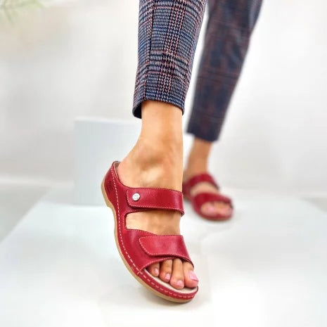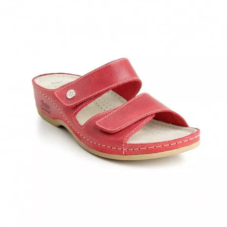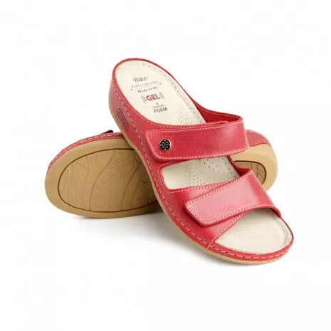 Batz FC06 női papucs fehér színben. 2 db állítható tépőzáras pánttal idomul bármilyen lábfejre. Felsőrésze 100% valódi bőr felhasználásával, kézi varrással készül. Extra puha, kényelmes, géltechnológiás talpszerkezete pihenteti a lábat akár egész napos használat mellett is. Több színben is elérhető. Az egyik legnépszerűbb női papucsunk.