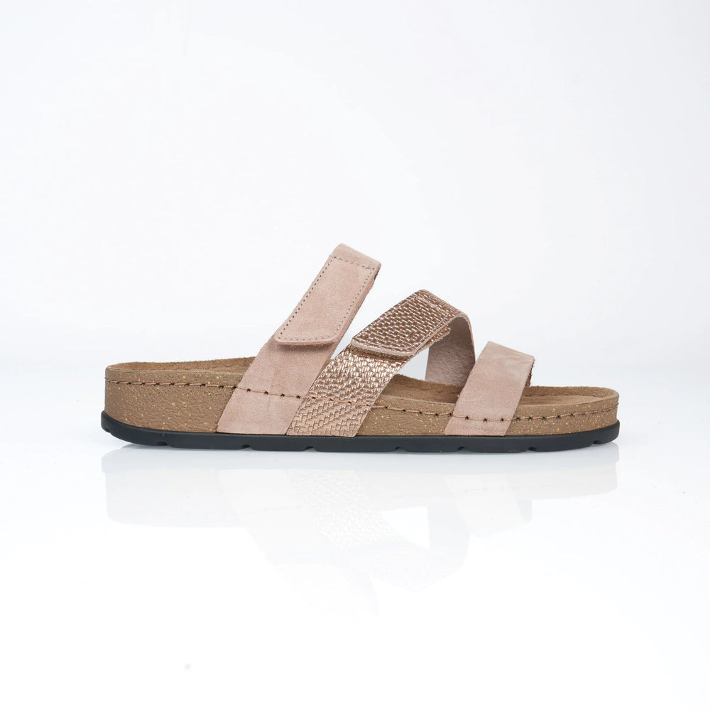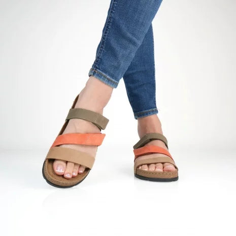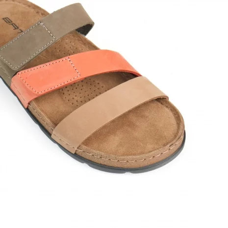 Válaszd a Batz Samantha papucsot, mely az ősz színes hangulatát hozza el minden lépésedbe. A khaki, narancs és bézs árnyalatok harmonikus kombinációja letisztult, mégis karakteres megjelenést ad ennek a nubuk bőr felsőrészű modellnek. Anatómiai kialakítása gondoskodik a láb megfelelő alátámasztásáról, míg a három pántból kettő könnyedén állítható, hogy a papucs tökéletesen illeszkedjen és a kényelem mindig személyre szabott legyen.