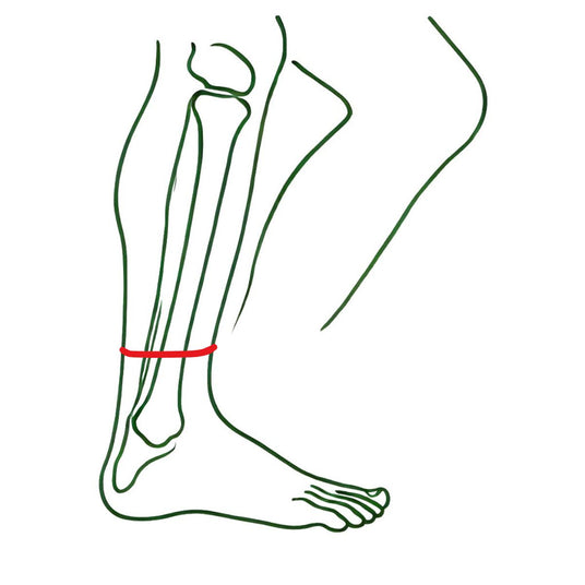 A bokarögzítő megfelelő méretének kiválasztásához mérje le a boka körméretét vízszintesen, 6-8 cm-rel a boka fölött, ahol a bokaszorító legteteje található a képeken.