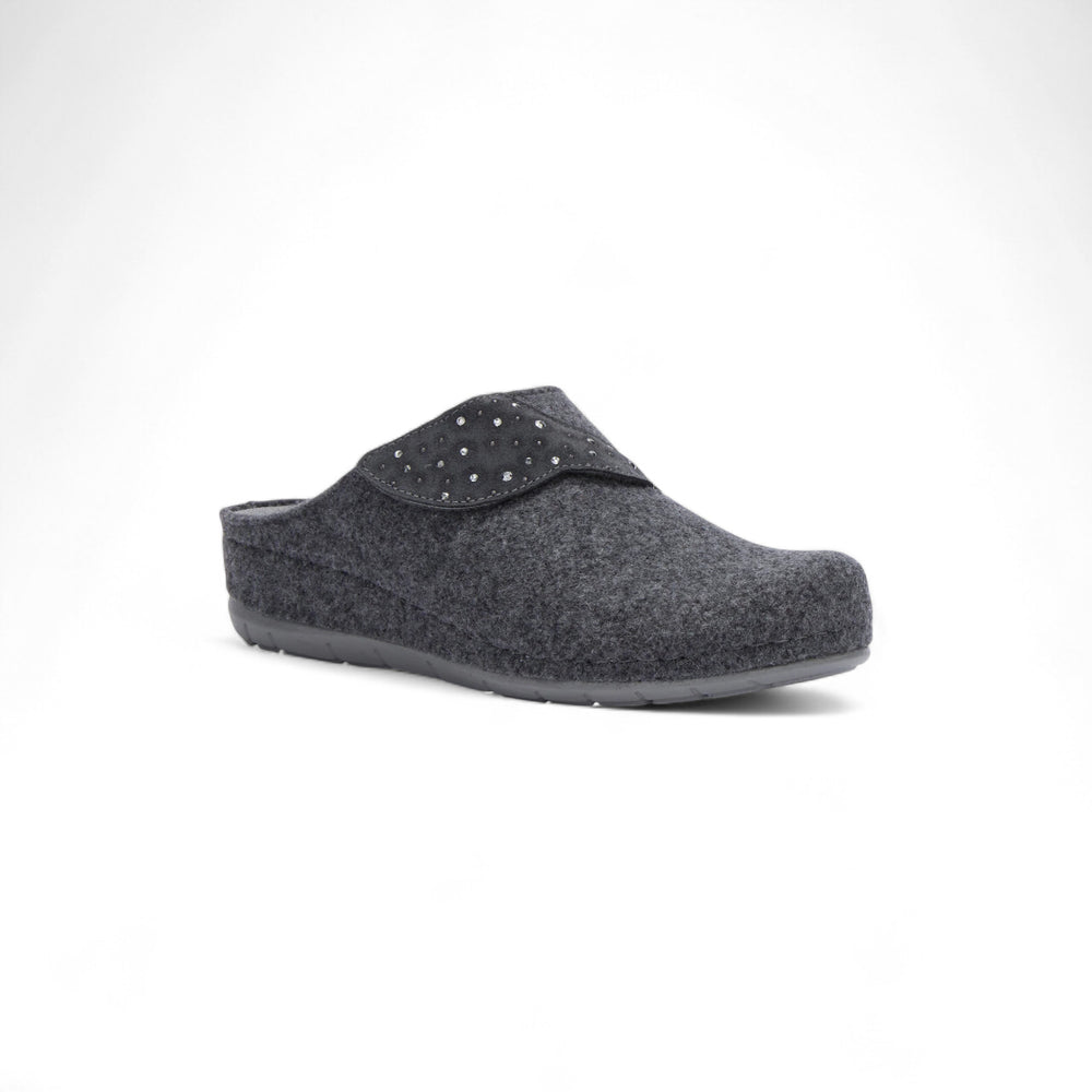 A Scholl Bruges papucs tökéletes társ a kényelmes otthoni pillanatokhoz. Kiváló minőségű gyapjúból készült, amely meleget és puhaságot biztosít a hideg napokon. Az állítható pántnak köszönhetően a papucs tökéletesen illeszkedik a láb formájához, garantálva a stabilitást és a személyre szabott kényelmet.
