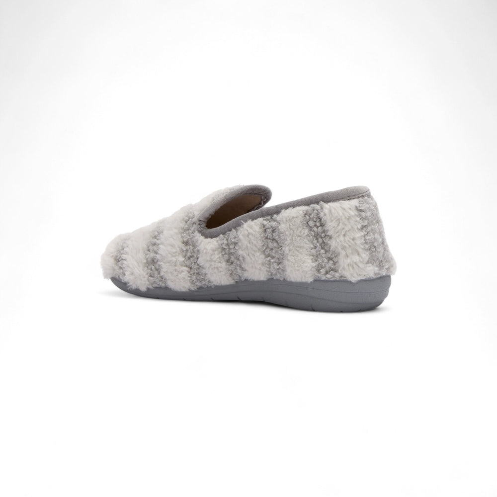 Ez a puha, csíkos műszőrmével bélelt papucs úgy öleli körbe a lábat, mint egy kényelmes zokni. A zárt sarokrész meleg, stabil tartást biztosít. A Memory Cushion® talpbetét gyengéden alátámasztja a lábat, csökkenti a nyomást, és hosszan tartó kényelmet nyújt az otthoni pihenéshez.
