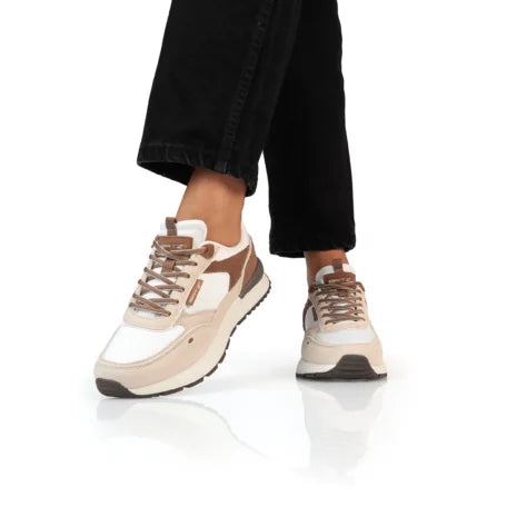 A Nyra Beige Mix a letisztult stílus és a mindennapi kényelem tökéletes kombinációja. A természetes bézs árnyalatokat a barna és törtfehér tónusok teszik izgalmassá – semleges, mégis karakteres darab, amely minden szettet feldob. Kombinált felsőrésze valódi bőrből, hálós textilből és mikroszálas műbőrből készült – s ezzel gondoskodik a prémium megjelenésről és tartósságról. Ráadásul egyedi talpbetét választásával teljesen személyre szabható – hogy tökéletesen igazodjon Hozzád.