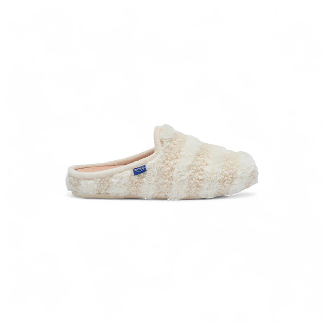 Ez a puha, csíkos műszőrmével bélelt papucs tökéletes választás a mindennapi otthoni kényelemhez. A bebújós kialakításnak köszönhetően könnyen felvehető, míg a Bioprint® talpbetét támogatja a lábboltozatot, és segít a helyes testtartás megőrzésében.